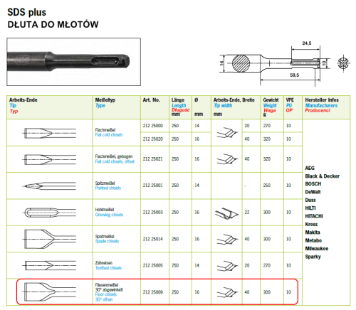 Dłuto SDS-Plus szerokie 250x16 mm 40 mm BLISTER