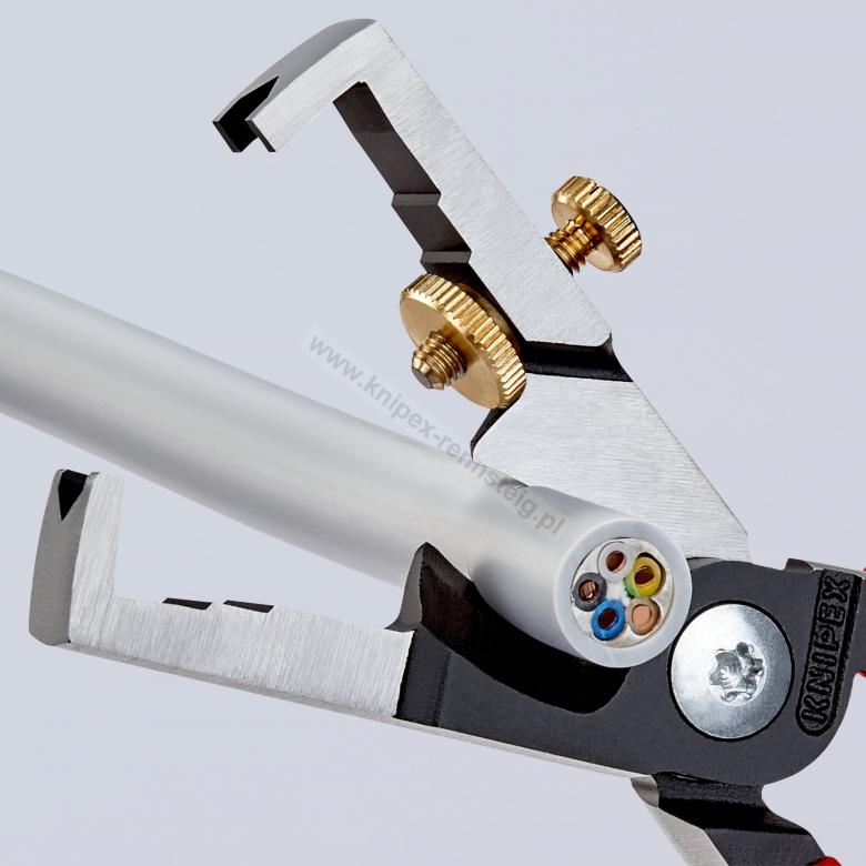 - Uniwersalna regulacja ostrzy do ściągania izolacji za pomocą śruby radełkowanej