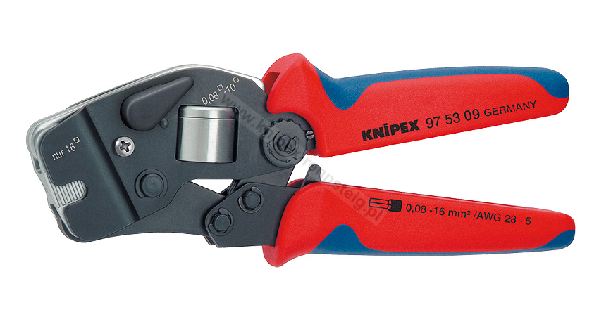 - Z dźwignią do ustawiania zakresu zagniatania od 0,08 do 10 mm² lub 16 mm²