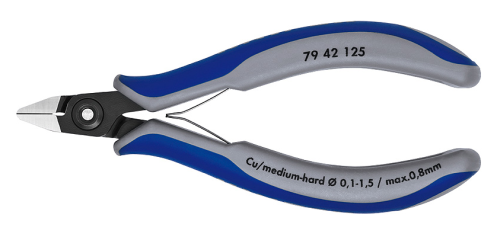 - Precyzyjnie szlifowane, ostre ostrza o bardzo małych ścięciach zapewniają dokładne cięcie w pobliżu drobnych podzespołów elektronicznych; wersja bez ścięć także do cięcia płaskiego