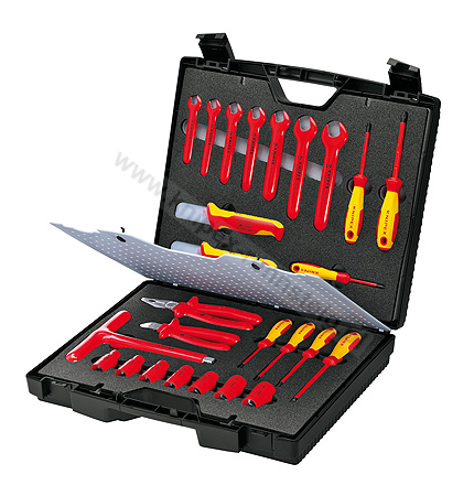 - Zawiera zestaw izolowanych narzędzi KNIPEX do prac przy urządzeniach i instalacjach elektrycznych