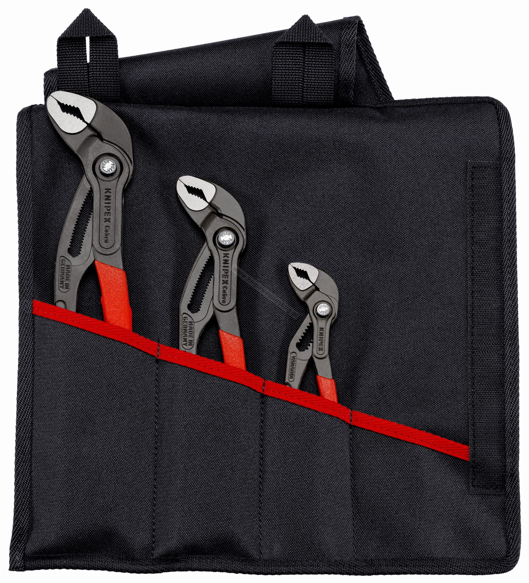 - Zawiera szczypce nastawne do rur Knipex Cobra o długości 150, 250 i 300 mm. Maksymalny zakres chwytu: 50 mm.